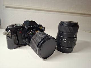 Cámara réflex analógica Pentax P3. - Cuerpo en color negro. - Incluye objetivo zoom Pentax Kalimar 28-80 f3,5 y - objetivo zoom Sigma 71-210 f4-5.6