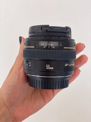 Objetivo Canon EF 50mm f/1.4 Compatible con todos los modelos Canon EOS DSLR, como sensor APS-C o Full Frame, se distingue por el punto rojo en la montura de la lente. también es compatible con los modelos Mirrorless EOS M usando el adaptador de montura EF a EF-M. Lo vendo porque ya no hago fotografía, y lo use solo 2 veces en su momento, es un objetivo muy bueno y el que me da hasta pena vender porque con su apertura 1.4 hace unas fotos increíbles en lugares sin apenas luz, me costó 600 euros