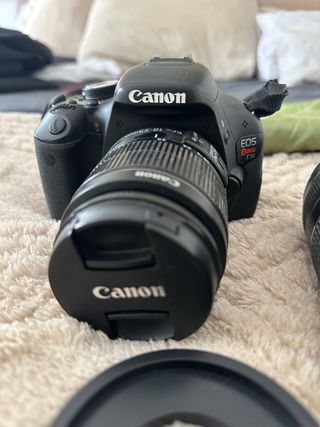 Cámara réflex digital Canon EOS Rebel T3i en color negro. - Objetivo EF-S 18-55mm. - Tapa de objetivo Canon. Se adjunta lente de 75-300 Cargador Rebotador de luz Ring flash