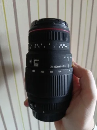 Objetivo Sigma 70-300mm APO para Canon Full Frame. - Rango focal de 70-300mm. - Apertura variable de 1:4-5.6. - Modo Normal y Macro. - Indicadores de distancia y apertura. Incluye parasol.
