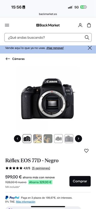 La vendo por falta de uso. Ya tengo otra cámara. Esta muy bien cuidada. La vendo sin objetivo, el objetivo nuevo y básico te puede costar 130€. Su precio original cuerpo solo sin objetivo, está en 700€. La vendo con su caja original, camara, bateria y cargador.