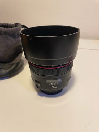 Objetivo Canon 50mm con apertura f/1.4. - Montura Canon EF. Tiene un detalle que se ve en la ultima foto. El mecanismo funciona muy bien. Se puede probar en persona. Optica impecable. La vendo porque ahora uso Sony.