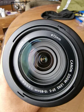 Objetivo Canon EFS 15-85mm. Lleva filtro UV Canon y parasol. - Zoom versátil para fotografía general. - Ideal para paisajes y retratos. - Construcción robusta. Lo vendo porque me he pasado al full frame. Con su caja original y las dos tapas