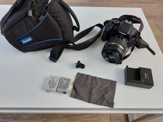 Muy poco uso. Se vende con objetivo 18-55 mm y mochila bandolera para transportarlo. En perfecto estado