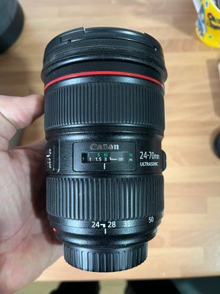 Objetivo Canon EF 24-70mm f/2.8L II USM. Muy cuidado, usado en estudio y siempre con filtro.