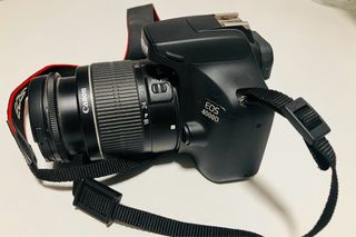 Cámara digital Canon EOS 1100D en color negro. - Incluye objetivo. - Correa para colgar al cuello.