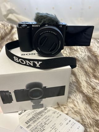 Cámara digital Sony ZV-E10 en color negro, ideal para creadores de contenido. Incluye el objetivo. CÁMARA A ESTRENAR ( LA VENDO PORQUE SE ME HA PASADO EL PLAZO DE DEVOLUCIÓN Y AHORA QUIERO COMPRARME LA CANON G7x) Comprada el 23 de diciembre con ticket del corte inglés. - Objetivo E 3.5-5.6/PZ 16-50 OSS II. - Micrófono direccional incluido.
