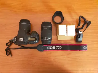 Se vende cámara Canon EOS 70D junto con dos objetivos. Ideal para fotografía. - Cuerpo de cámara Canon EOS 70D. - Objetivo Canon EF-S 18-55mm. - Objetivo Yongnuo EF 50mm f/1.8 STM.
