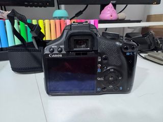 Cámara réflex Canon 1100D en perfecto estado, ideal para iniciarse en la fotografía. - Incluye objetivo zoom Canon EF-S 18-55mm y otro de 38-76 Canon. - Cargador de batería original Canon. - Correa para colgar la cámara. - Bolsa de transporte acolchada.