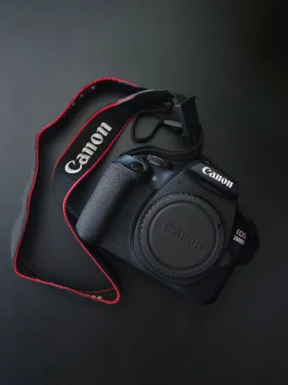 Cámara réflex Canon EOS 1000D en color negro. - Cuerpo de cámara. - Objetivo Canon. - Tapa de objetivo Canon. - Funda - cargador - cables para ordenador y tele