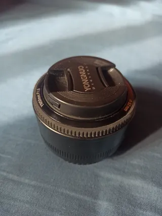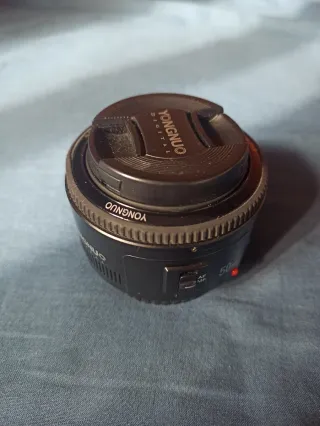 Lente Yongnuo YN 50mm con gran apertura F1.8, compatible con enfoque automático (AF) y manual (MF). - Montura para cámaras réflex. - Diseño compacto y ligero. - Gran apertura Lente. - Montura Canon EOS EF. - Se vende por cambio de camara. - No ha sufrido ningún golpe. - Nuevo 96€