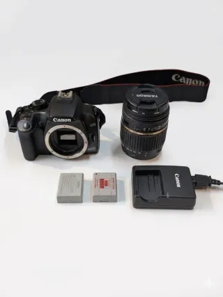 Con solamente 10.836 disparos certificados; muy poco usada (le queda un 90% de vida útil) Ideal para empezar a aprender fotografía. Kit completo de cámara réflex Canon EOS 1000D en buen estado estético y de funcionamiento. Muy cuidada. Incluye un objetivo Tamron 18-200mm f/3.5-6.3 versión Macro. Es un objetivo todoterreno, sirve tanto para paisajes (angular) como para hacer zoom a objetos lejanos sin tener que cambiar de lente. Es una cámara genial para viajes. Qué incluye? -Cuerpo Canon EOS 1000D -Objetivo Tamron 18-200mm macro (con su tapa) -Correa original Canon -Cargador y dos baterías Envío por wallapop y vinred