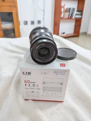 Objetivo macro 7Artisans 60mm f/2.8 II para cámaras APS-C. Y FULL FRAME. ES muy nítido y su construcción es excelente. Su distancia mínima de enfoque es de unos 15 cm.. El bokeh que deja es espectacular. Me lo han regalado y no lo voy a utilizar por eso lo vendo. Está en su caja, a estrenar. - Enfoque manual. - Diseño de lente prime. HAGO ENVÍOS.. por correo ordinario o certificado. El método de pagos y envíos de Wallapo no funciona en Canarias. Pagos por bizum o transferencia bancaria. LEER ESTO ATENTAMENTE por favor.