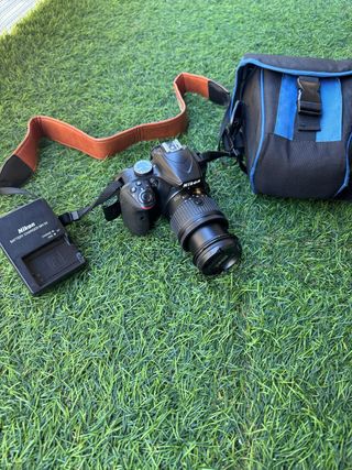 Cámara réflex digital Nikon D3200 en muy buen estado, lista para capturar tus mejores momentos. Incluye objetivo. - Objetivo Nikon AF-S DX NIKKOR 18-55mm f/3.5-5.6G VR. - Correa de transporte Nikon. - Cargador de batería - Funda de viaje