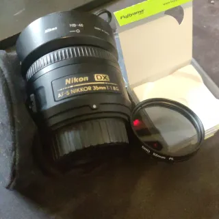 Objetivo Nikon DX AF-S 35mm f/1.8 con filtro UV incluido. Ideal para fotografía versátil. - Distancia focal de 35mm. - Apertura máxima de f/1.8. - Montura tipo F (DX). - Incluye filtro UV.