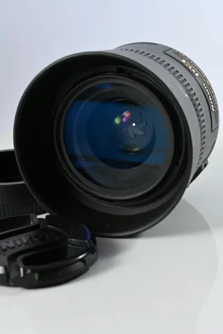 Objetivo para cámaras Nikon con una apertura máxima de f/1.8, ideal para fotografía con poca luz y retratos. - Modelo AF-S DX NIKKOR 35mm f/1.8G. - Incluye parasol. - Tapa frontal y trasera. - Funda original Nikon - Caja original y manuales