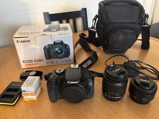 Cámara digital Canon EOS 600D con accesorios. - Cuerpo de cámara Canon EOS 600D. - Objetivo Canon EF-S 18-55mm. - Objetivo Canon EF 50mm. - Bolso de cámara. - 2 Cargadores de batería (original + USB) - 3 Baterías. - Disparador La camara y objetivos tienen varias marcas de uso pero funciona todo a la perfeccion. Pantalla abatible. Foto y video. Recogida en mano en Madrid o envíos por wallapop. No leer: compacta Rebel T3i, Cámara Reflex, DSLR, Cámara digital, Canon 550D, 650D, 700D, 750D, 800D, 2000D, 4000D, 1300D, 1200D, Nikon D3100, D3200, D3300, D5100, D5200, Sony Alpha, Full HD, 1080p , Vlogging