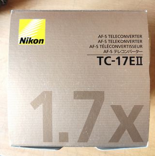 Teleconvertidor multiplicador focal NIKON TC-17E II dotado con 1,7 aumentos. Está en perfecto estado. Nada usado. Valido para teleobjeticos AF-S y AF-I y para cámaras series F4, F5, F6, F-90X/N-90S, F-80/N-80, F-75/N-75, F-65/N-65, PRONEA600i, PRONEA S, D1, D2, D3, D40, D40X, D50, D70, D80, D100, D200, D300. INCLUYE: - Caja con moldes protectores - Teleobjetivo - Funda de teleobjetivo - Folio de Garantia - Manual de instrucciones - Caja, Bolsas y plasticos de burbujas. Precio único. Sin usar por tener cámara errónea. (Mi cámara es la D3100) ¡¡ Rebajado!!!