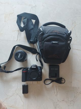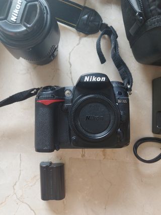 Vendo cámara réflex Nikon D7000 en color negro. Incluye un objetivo. La cámara se encuentra en buen estado. - Cámara réflex digital - Objetivo (se ve en la imagen) - Batería - Correa - Funda - Manual de uso