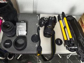 - Cámara Réflex Nikon D3000 - Objetivo Nikon 18-55mm - Objetivo Nikon 55-200mm - Bateria y cargador original - Parasol para objetivo -Bolsa para transportarla - trípode extensible En perfecto estado . Se vende por poco uso.