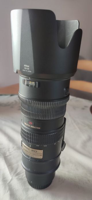 Objetivo Nikon AF-S NIKKOR 70-200mm f/2.8G ED VR. Está en buenas condiciones, con algunas señales normales de uso. - 70-200mm de alcance. - Apertura máxima f/2.8. - Estabilizador de imagen VR (Reducción de Vibración). - Incluye parasol HB-29. Golpe en la carcasa que no afecta nada a su funcionamiento. Por lo cual no se puede colocar filtro Ver la fotografía con el círculo en rojo. Algo negociable el precio. Sin tapa lente