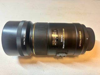 Objetivo Sigma 105mm f/2.8 DG Macro HSM con estabilizador óptico. (Para Nikon, montura F). Prácticamente nuevo, muy poco uso. - Distancia focal de 105mm - Apertura máxima de f/2.8. - Diseño DG para cámaras Full Frame. - Motor HSM para un enfoque rápido y silencioso. - Incluye parasol. - Escala de magnificación macro.
