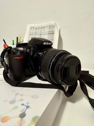 Precio negociable. Cámara réflex Nikon D3400 en muy buen estado, funcionando perfectamente. Ideal tanto para principiantes como para quien quiera una réflex ligera y de calidad. Incluye: Cámara Nikon D3400 Objetivo Nikon AF-P DX 18–55mm VR Cargador original Nikon Tapa de objetivo Funda/bolsa de transporte Correa original Nikon Características destacadas: Sensor APS-C de 24,2 MP Fotos de gran calidad y muy buen rendimiento con poca luz Vídeo Full HD Objetivo con estabilizador VR Conectividad Bluetooth (SnapBridge) Muy ligera y fácil de usar Siempre cuidada, sin golpes ni caídas. Se ha usado solo para estudio. Cualquier duda, ¡preg