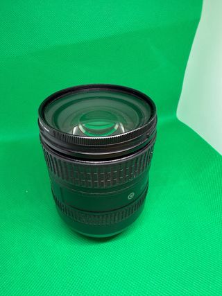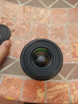 Objetivo Nikkor 24-85, 3.5-4.5 G para Nikon. Tiene marcas de uso pero funciona correctamente. Lleva filtro UV, que ha tenido puesto para proteger la lente.