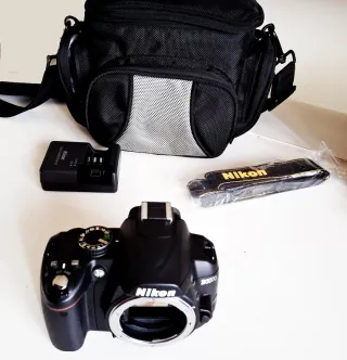 Se vende cámara réflex digital Nikon D3000 en color negro, junto con sus accesorios. - Bolsa de transporte acolchada. - Cargador de batería. - Correa para el cuello. Opcional Objetivo NIKON 18-105... (valor 120€).. todo junto camera + objetivo 175€