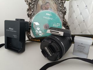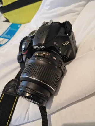 Cámara digital muy mimada con 3 años dé poco uso (3 veranos y algunas salidas esporádicas). Este modelo tiene conexión bluetooth para conectar con el teléfono y descargar las fotografías directamente en el.El pack incluye el objetivo 18-55mm VR marca Nikon, objetivo 55-200mm VR marca Nikon, objetivo 50mm MF AF marca Yongnuo. También incluye mochila con filtros y accesorios que se muestran en las fotografías.