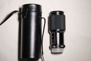 Lente manual vintage Tokina 35-200mm f/3.5-4.5 con montura Nikon F. Teleobjetivo de construcción robusta, con un anillo de enfoque y zoom muy suave. La apertura varía hasta f/22. Su enfoque mínimo de 1.6 metros. Leves signos de uso, buena estetica y funcionamiento. Entrega con su funda.