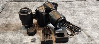 Nikon D7000 en muy buen estado, con 2 objetivos Nikon 18-105 DX y Nikon 55-200 DX, también incluye filtros protectores y empuñadura vertical con porta batería y porta pilas, cargador y 1 batería