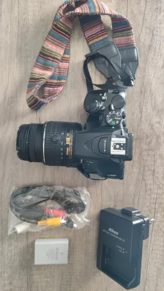 Vendo cámara Nikon D5000 en excelentes condiciones. Es una cámara réflex digital negra, ideal para principiantes o aficionados a la fotografía. - Incluye objetivo Nikon. - Cámara en muy buen estado. - Regalo bolsa de transporte