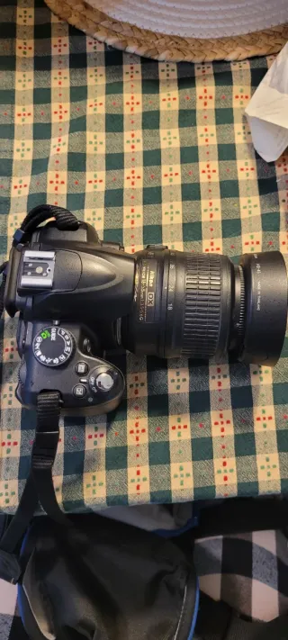 Envío disponible solo para Canarias. Vendo cámara réflex Nikon D5000 en buen estado, funciona a la perfección y solo presenta un poco de desgaste externo. Incluye objetivo, batería, cargador y bolsa de transporte, todo original. La cantidad de diaparos es de 7822, solo un 8% de la vida útil del obturador. Se puede ver en persona sin compromiso. - Cámara réflex digital Nikon D5000. - Objetivo AF-S NIKKOR 18-55mm. - Cargador original. - Bolsa de transporte Nikon.