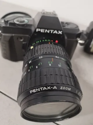 Vendo cámara réflex analógica Pentax P30N en muy buen estado, perfecta para iniciarse en fotografía de carrete. Incluye: Objetivo SMC Pentax-M 50mm f/2 (ideal retrato) Objetivo SMC Pentax AF Zoom 35–70mm f/2.8 Funda original Pentax Correa - Fabricado por Asahi Opt. Co. en Japón. - Incluye interruptor de Auto Focus (ON/OFF). - Montura para cámaras Pentax.