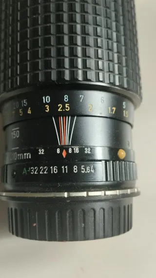 Objetivo tele-zoom montura pentax k, en perfecto estado sin rayas ni defectos, en su caja original. Comentarios: "Excelente nitidez en todo el rango focal. Modo Macro a 70mm con un aumento de 1:2.5, excelente para fotos de mariposas o bichos. La nitidez es buena a F4 en el centro y bordes y excelente a F8. Tiene un grip bastante grande para enfocar. La construcción es muy robusta y lo bueno es que al ser A guarda los automatismos. Precio: entre 50€ y 140€ dependiendo del estado." Foto con pentax p30n 210mm f5.6 Mas artículos en mi perfil