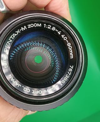 Objetivo SMC Pentax-M Zoom. Para Full Frame o APS-C - Distancia focal: 40-80mm. - Apertura: 1:2.8-4. - Fabricado por Asahi Opt. Co., Japan. - Montura: Pentax K Incluye tapas delantera y posterior. Lente totalmente funcional, limpia y sin hongos