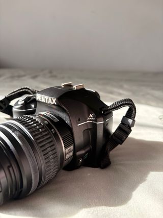 Se vende cámara réflex digital Pentax K-r junto con dos objetivos Pentax 50-200mm y 18-55mm . 🔹 Características de la cámara • Modelo: Pentax K-r • Sensor CMOS de 12,4 MP • Pantalla LCD de 3” • Ráfaga de hasta 6 fps • Sistema de estabilización SR integrado en el cuerpo • Compatible con montura Pentax K - Cámara réflex digital Pentax K-r. - Objetivo Pentax 18-55mm  - Objetivo Pentax 50-200mm. 🔹 Estado ✔ Cámara y objetivos bien cuidados ✔ Funciona todo correctamente ✔ Lentes limpias, sin rayas ni hongos ✔ Se entrega con tapas y correa Pentax original