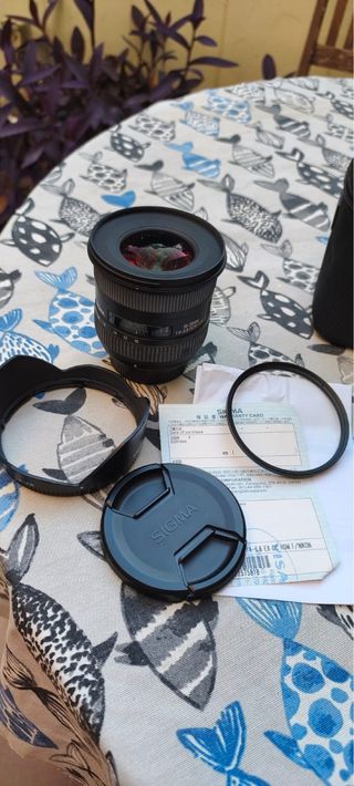Objetivo Sigma 18-35mm f1.8 - Montura Nikon F. - Apertura f1.8. Hay una pequeña grieta en el anillo frontal de la lente donde se encuentran las roscas del filtro; no afecta la imagen.