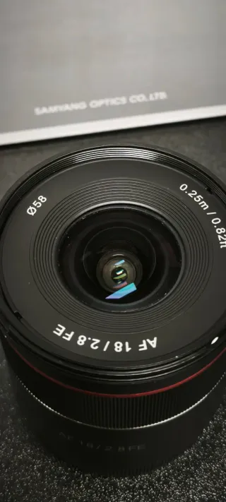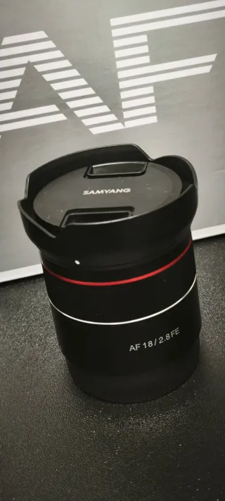 Objetivo Samyang AF 18mm f/2.8 para montura Sony FE. Compacto y ligero. - Distancia focal: 18mm - Apertura: f/2.8 - Montura: Sony E (FE) - Diseño compacto y ligero - En perfecto estado. - Siempre con filtro.