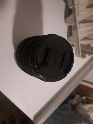 Objetivo Sigma DC 18-250mm para cámara Nikon reflex. DC OS HSM para cámara réflex 1:3.5-6.3 optical stabilizer. Se vende tal cual aparece en las fotos, con desperfecto en el plástico exterior, desconozco si afecta o no, parece solo un daño estético (conectado a la cámara que tengo en el perfil funciona el objetivo). Envio en 24/48h. El polvo que se ve en las fotos es superficial, debido a la bolsa de algodón en la que está guardado. Se envía en una bolsa de algodón gruesa, envuelta en plástico de burbujas, y metida en una pequeña caja. No acepto devoluciones, se envía en el estado señalado