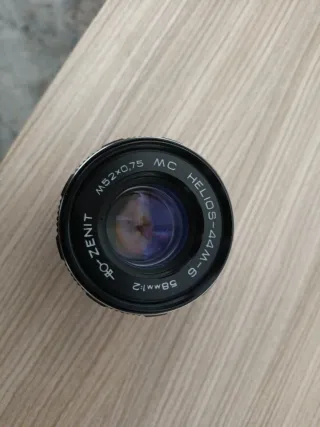 Objetivo ruso Zenit Helios 44M-6 de 58mm y apertura f/2. Montura M52x0.75. - Objetivo Helios 44M-6. - Distancia focal: 58mm. - Apertura máxima: f/2. - Montura: M52x0.75. - Fabricado en Rusia.