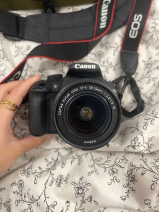 Cámara réflex digital Canon EOS 550D. - Color negro y gris. - Incluye correa para el cuello. - Regalo funda cámara - Regalo filtros - Objetivo 55-250mm puedo venderlo aparte (150€) Muy bien cuidada, tiene unos 4 años, pero la he usado muy poquito y siempre con protección, limpieza y cuidados.