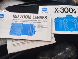 Cámara Minolta X300 hace mucho que no se usa,junto con sus manuales de instrucciones. Incluye dos manuales: uno para la cámara y otro para los objetivos zoom MD. - Modelo: Minolta X300. - Incluye manuales de instrucciones. - Perfecta para entusiastas de la fotografía vintage. Regalo trípode Bolsa para su transporte seguro