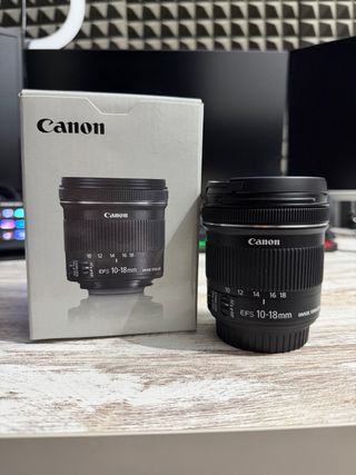 Objetivo Canon EFS 10-18mm con estabilizador de imagen. - Montura EFS. - Apertura f/4.5-5.6. - Tecnología STM para un enfoque suave y silencioso. Esta en perfectas condiciones. Se vende por falta de uso.