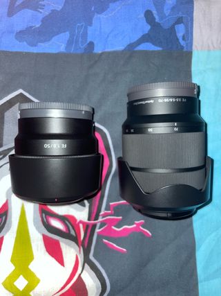 Se venden dos objetivos Sony montura tipo E. - Objetivo 28-70mm con apertura f/3.5-5.6, con parasol y con filtro Polarizador por 300€ - Objetivo 50mm con apertura f/1.8 y con parasol por 150€ - El pack completo cuesta 350€ Lo vendo porque me cambio a un objetivo variable que tiene mejores características.