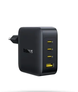 Cargador de pared Baseus en color negro. - Diseño compacto y moderno. - Múltiples puertos para carga simultánea.