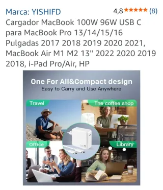 Cargador YISHIFD 100W USB C MacBook