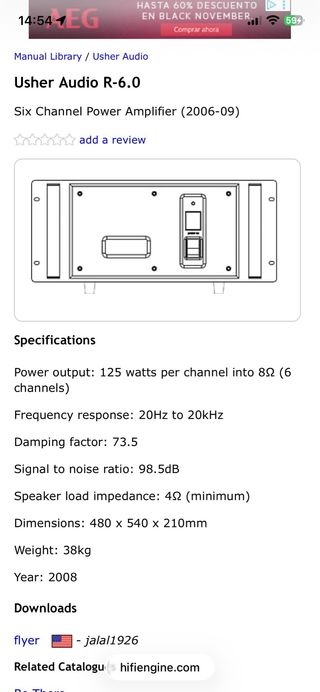 Etapa de potencia Usher R6. - Diseño elegante en tonos grises y plateados. - 125w x 6 canales (multicanal) ideal para biamplificar o triamplificar. - 39kg de construcción de máxima calidad. - se puede ver y probar