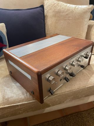 Amplificador integrado SONY 1120 A con un diseño clásico y elegante. - Acabado en madera y panel frontal de aluminio cepillado. - Controles de volumen, balance, tono y selector de función. - Indicador de encendido y selector de modo. - Espectacular en todo Estado, funcionamiento en todo, no hay otro igual. - Se hacen envíos (no por Wallapop ) - Negociable.